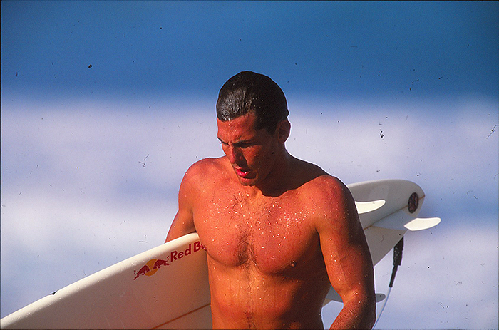 Surfing freakster who pushed the limit in everything he did including 3 World Titles and one of only a few to challenge Slaters domination. He but was taken far too young in 2010. Serious head, Northshore early 2000s.