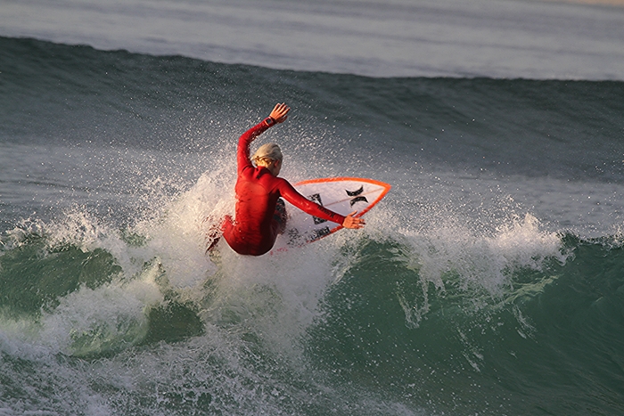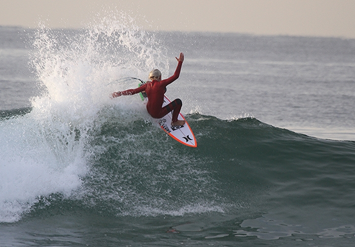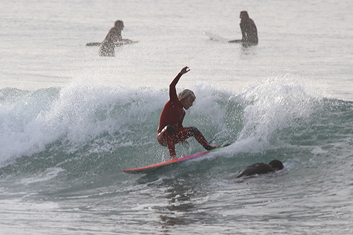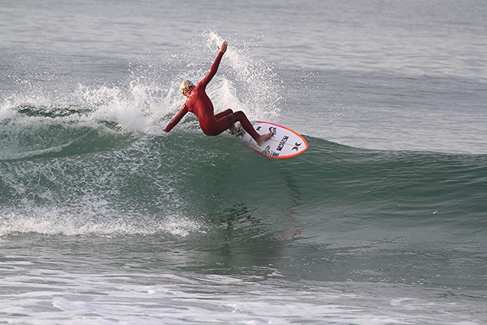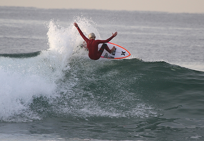 Midway on the incoming tide. Small gutless waves but young Jarvis makes it look good.