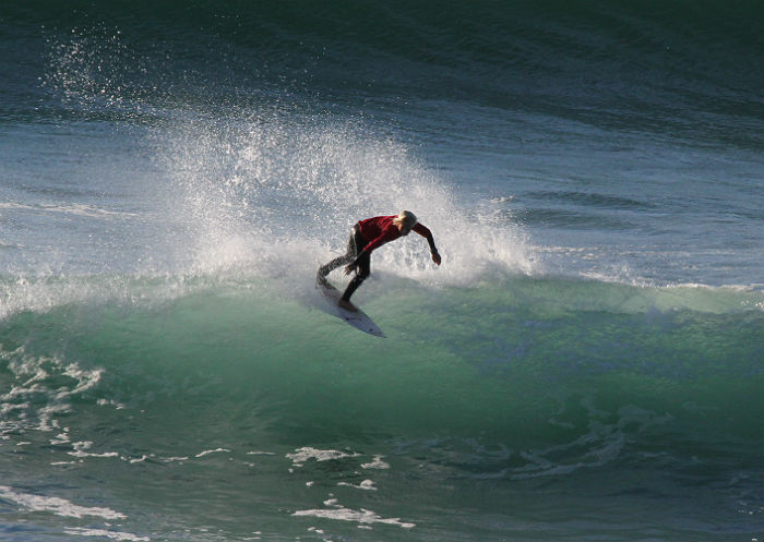 Micro grom Jarvis, rpping in the first heat at The Carve Dunnybowl comp at Elouera Beach.