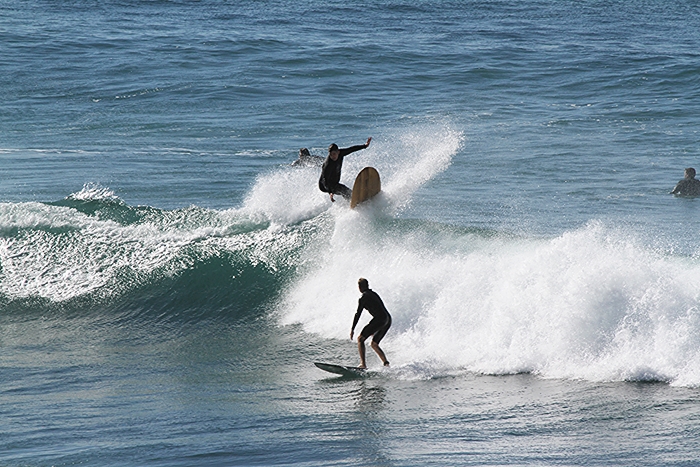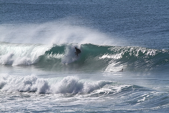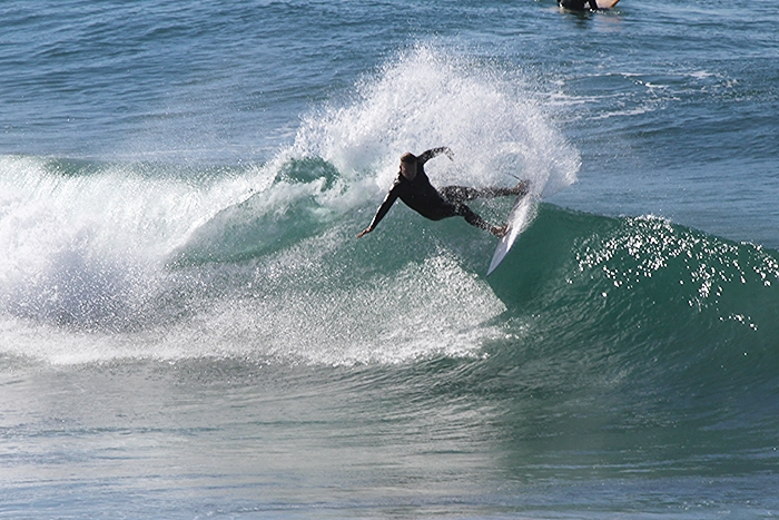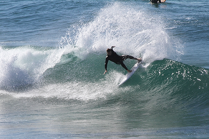 Wednesday was like a summer day with bright blue skies, 3ft of swell and offshore winds right across The Bate Bay strip. Elouera beach with a few nice lefts.