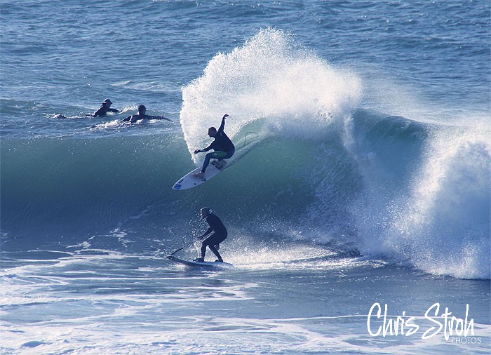 7th July 2012 Cronulla Point..Surfer Scotty Yealand and Ronny “The Skull” on a motorised surfboard tag team a Point wave.