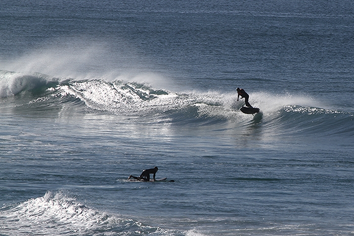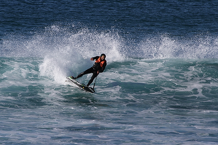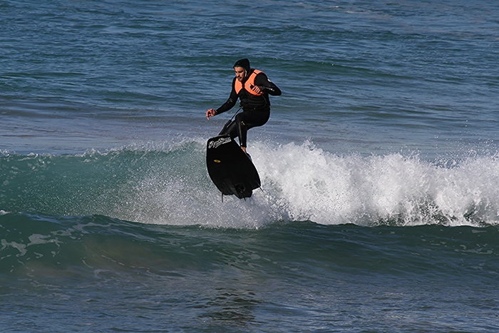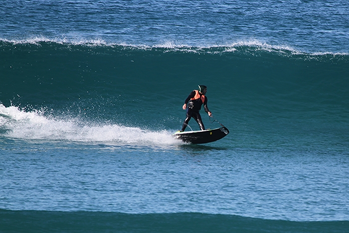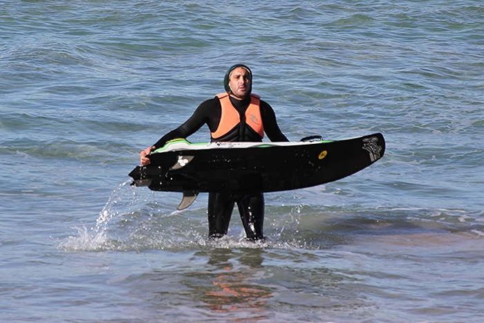Ronnie “Skull” and his motorised surfboard at Wanda.