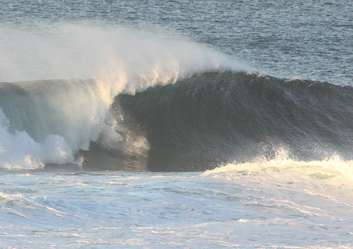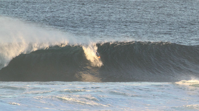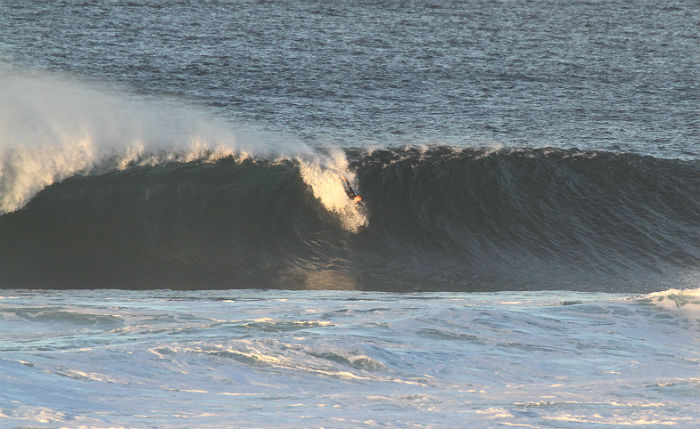Bodysurfer Peter Sperling having a dig in some testing conditions.
