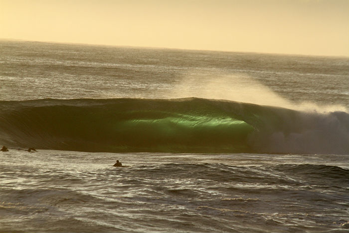 After weeks of summer sub standard conditions the original Slab wave Shark Island roared to life yesterday. First light.
