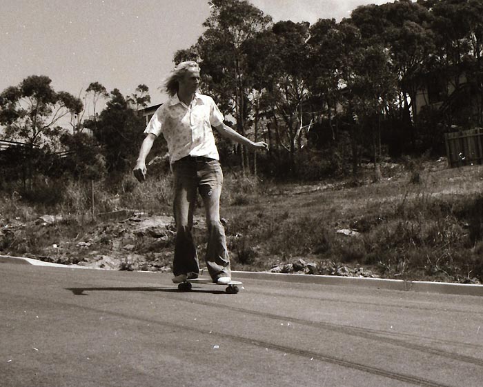 When the new Bahne Superflex Skateboards hit the market every surf kid wanted one and a bunch of us went up to Max Garlings with our $30.00 to score one. It would soon be the start of vertical moves by the Dogtown crew. In ’73 we were still just cruising on the downhill slopes hoping not to get the death wobbles. Greame Myers Engadine.