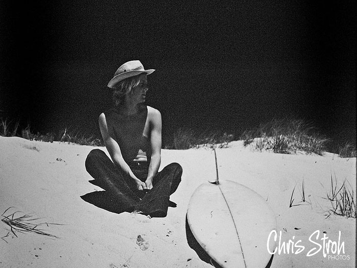 Typical 70’s..flares, blonde hair , single fin and no leg rope. When I first started taking surf related photos I shot mostly my mates. Heres Greame “Maddog” Myers at Greenhills sand dunes around ’73.