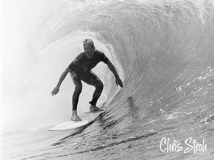 South Coast 70’s legend Terry Richardson exiting the barrel at one of his lesser known Southern reef spots.