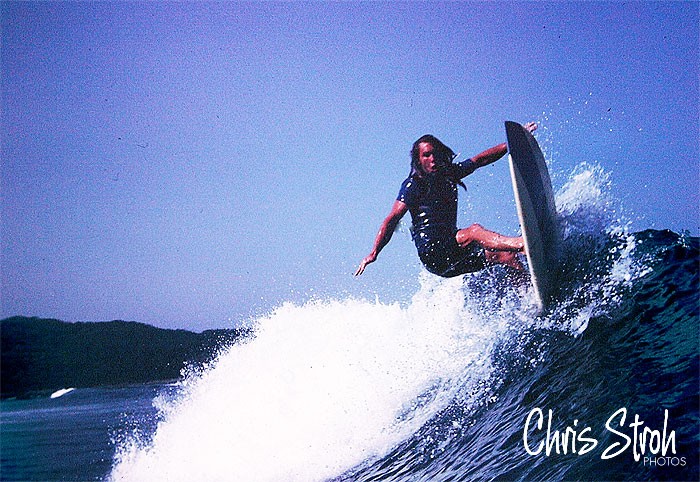Growing up in the 70’s as a surfer was the best of times. We didn’t care about contests, there was no mobile phones, no internet long range weather reports, it was fill the car up and go. Everyone pretty much just cruised and flowed with the waves. There was none of this jerky style slipping and sliding it was all down the line flow. This photo captures the times..Long hair, black wetsuits and single fin carves. Back then I surfed more than I ever photographed, this shot taken on the South Coast, rider unknown.