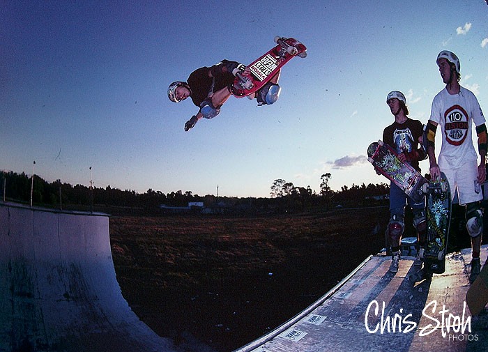 Around ’86 Adam Luxford was making a name for himself as Australias hottest vert skater in the country. This pic was taken at the legendary Quakers Hill ramp at a late arvo session a few days before it was dismantled forever.