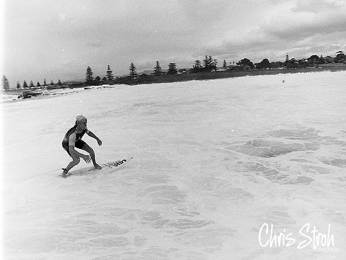 South Coast surfer Chris Homer was the king of Razors when this pic was snapped as he drives around the section to linep the pit. Razors was an intense barrelling reef wave that broke just in front of a sharp unforgiving rockledge. Wipeout and you could easily loose some bark.