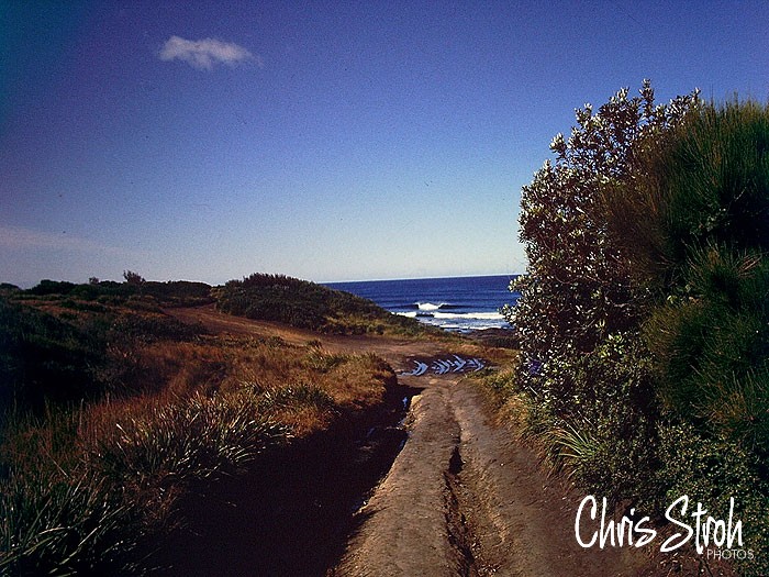 This South Coast reef  was off the beaten track and not many people knew about it when this pic was taken in the mid 80’s. We’d drive through the bush as far as we could then walk the rest of the way. Taken with a wide angle lens it doesn’t give you a real indication of the size. It was 2 metres barreling off its nut and no one out.