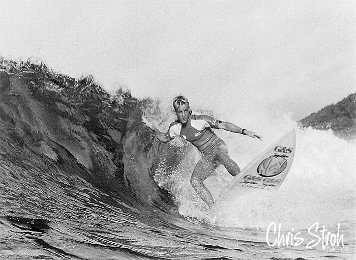San Clemente’s Jim Hogan was apart of the American NSSA push in the early to mid 80’s that saw America once again rise up as a dominant competitive surfing nation. Along with Curren, Archy, Frohoff and many others Hogan was a super competitive surfer on tour. There was one story about how Occy wanted to punch out Hogan. That was until he found out that the small framed (no relation to Hulk Hogan) American was once a champion wrestler back at home. This shot was taken at The Spot a dry sucking rock ledge just south of Sydney around ’83.