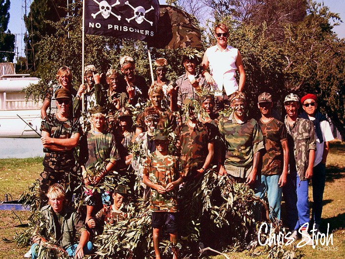 At the extremely competitive National Scholastic titles held in Middleton in South Oz in ’88 the NSW team were victorious and celebrated the win by dressing up in combat apparel to run amok at the presso.