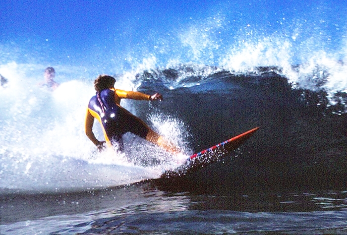 83/ 84 Occy riding a Jim Banks shape surfboard almost collects me as he hits the lip and flies over the top. Using a Nikonos Im only feet away from being head hunted. Luckily he missed as I felt his fins rake across my back as I dived out of the way.