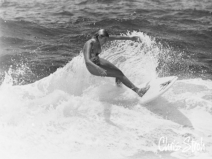Women surfers owe a lot to Pam Burridge who pioneered the sport almost single handed for many years in the 80’s in OZ. When Pam first started out competing she had to surf against the men because there was no women’s divisions.This Shot taken Queenscliff Circa 80’s.