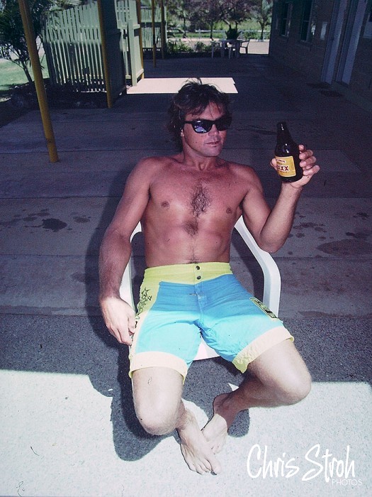 Queensland surfing hero Russell Specht is a bit of a legend on North Straddie. True to cane toad form he skulls a 4xxxx at Agnes Waters.
