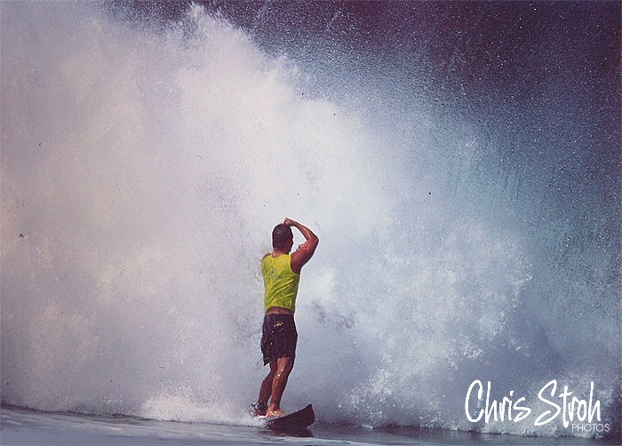 Northshore tube riding  specialist Shaun Briley gives this Pipeline closeout some attitude. Early 90’s.
