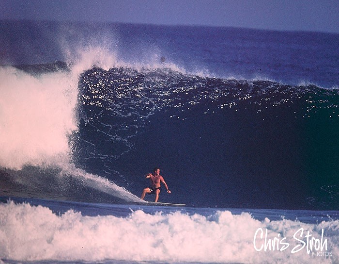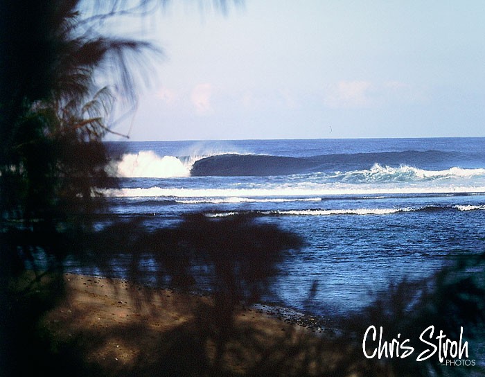 This is one of those tropical palm tree island spots in the South Pacific you can’t name unless you want some bad vibes from the locals. You have to be invited and just rocking up is not reccomended. Both these shots were taken on the same day with a local boy enjoying a clean uncrowded day around ’97.