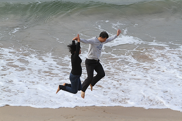 A day at the beach. winter bathers The Alley