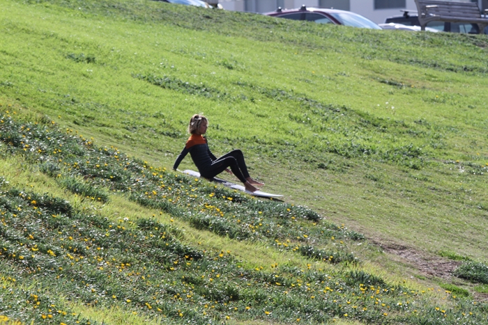 Its kind of an Aussie tradition to slide down the side of sand hills or grass slopes. These Groms used a recently broken surfboard to get their slide on.