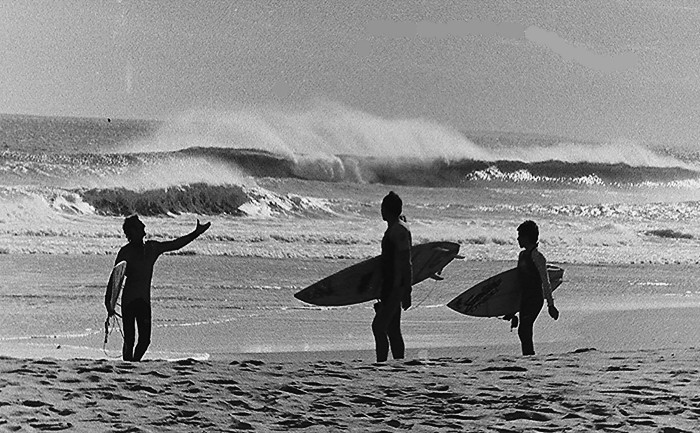 This is one of my favourite shots from the 80s. Taken at Waitapinga beach in South Oz. on a desolate and stark rugged coastline where surfing with White Pointers can be a daily ritual . Three local Surfers are amped onĀ  the uncrowded waves they have ridden and dont even know Im there capturing the moment. Could have been any beach around Australia on any given day, this pic I feel captures some of the pure stoke Surfing can bring.