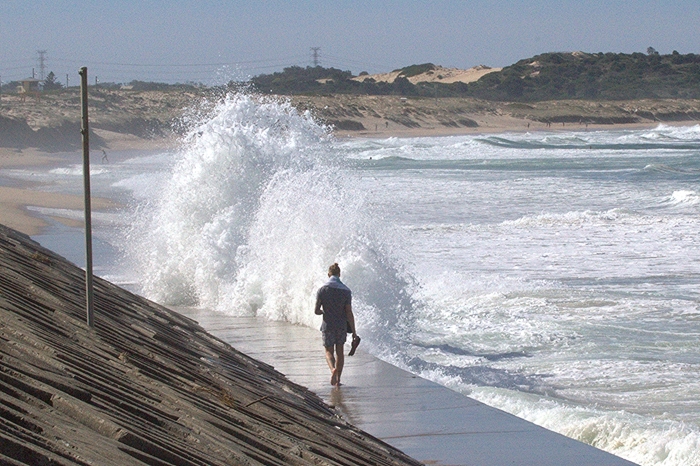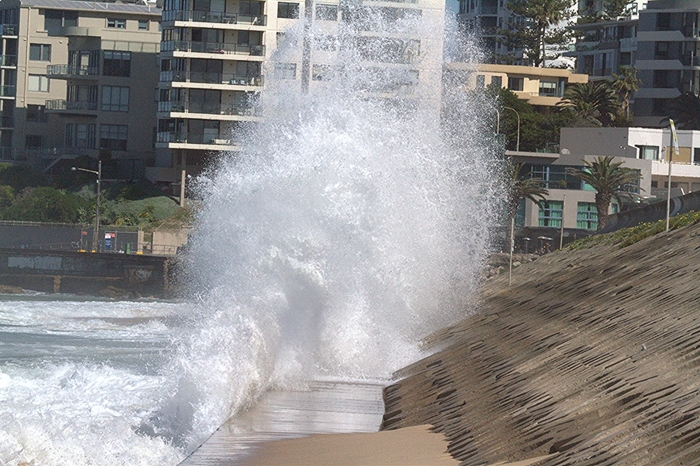 Storm swells and a large high tide caused a unique backwash explosion effect at The Wall at Cronulla.