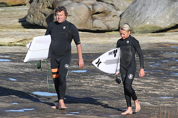 Another day at the office for Boogs and 12 yearold son Kalani. If you ride the kind of waves the pair do, broken boards go with the territory .