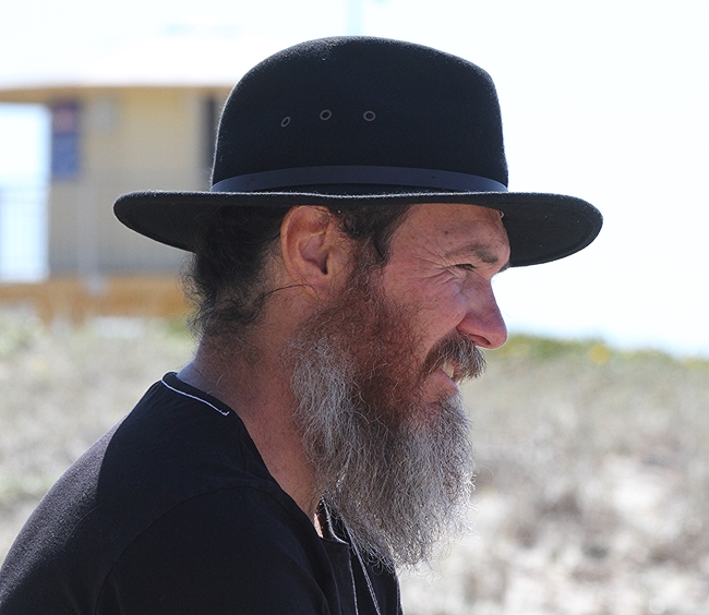 Cronulla longtime well known surfing and clothing manufacturing identity Ritchie Brown watches on as young son Zai competes in The Under 13s Division at The Carve Dunny Bowl.