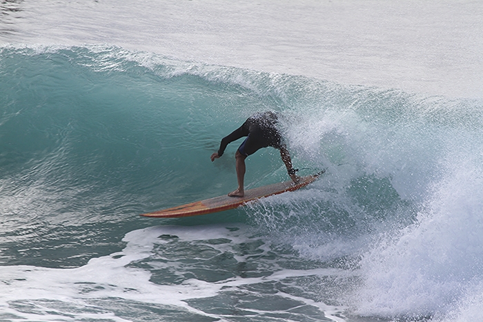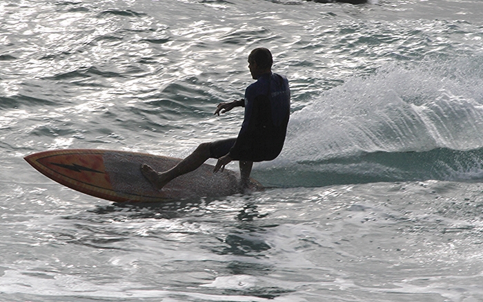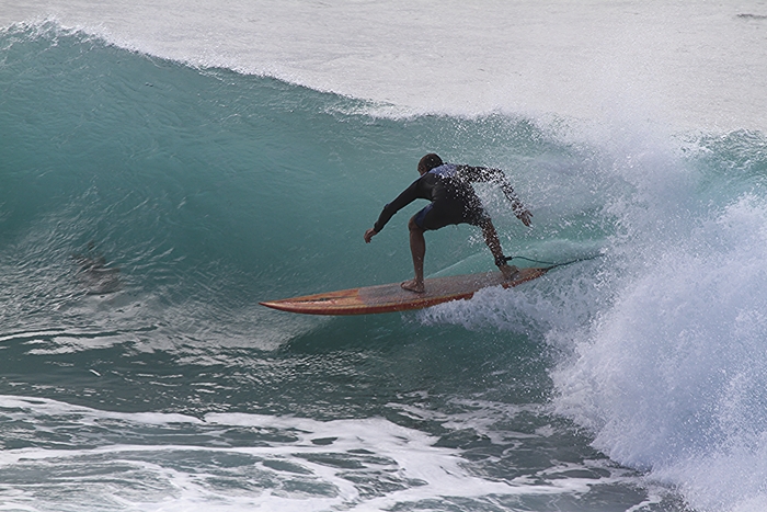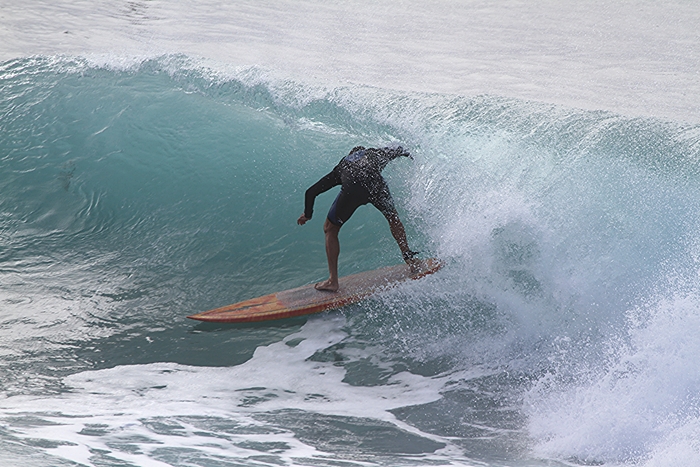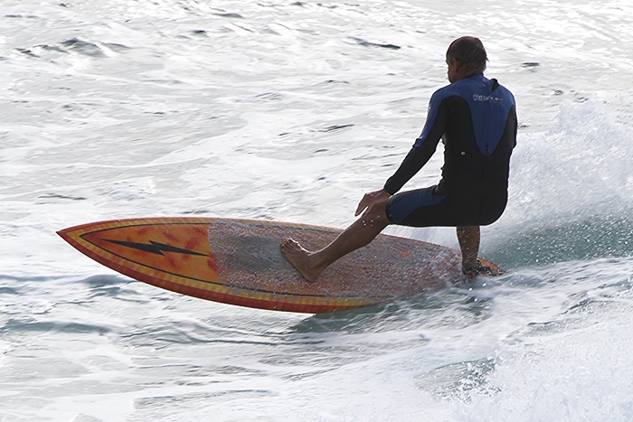 In the 70’s a Lightning Bolt symbol on the nose of a surfboard was as good as it gets. Last swell at The Point local surfer John Labors ventured out on his trusty old tube shooter with the Gerry Lopez inspired logo proudly on display.