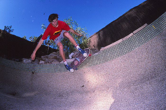 Talented Skater Adam Luxford rides the shallow end pool wall , he was one of the best Aussie Sk8ers around this time.luxford