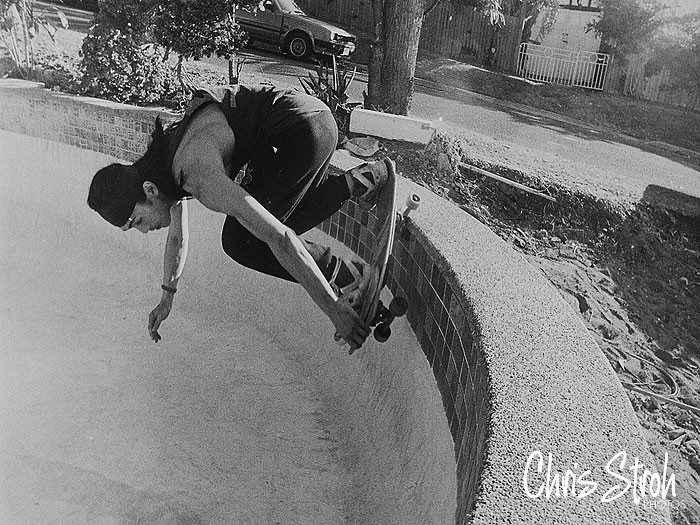 Surfers have tubes , Skaters have pools. In the 70s and 80’s a pool was the ultimate playground for skaters and to skate one usually meant a hit and run session before you were busted by police for trespass and vandalism. Here Dave Mock takes advantage of this rare covert pool session while it lasts.