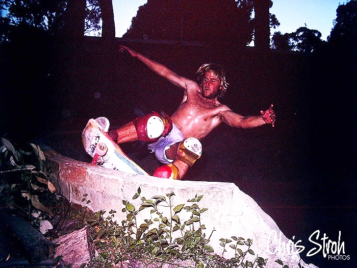 Surfer, shaper and skater Mick Mackie tearing up the Stiff bowl back in the mid 80’s.