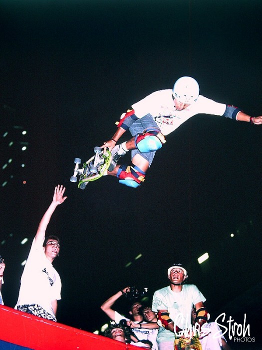 As part of The Bones Brigade Steve Caballero had a huge influence over skaters and fashion in the 80’s. This shot taken in Sydney during a tour downunder. That’s Mike McGill watching.